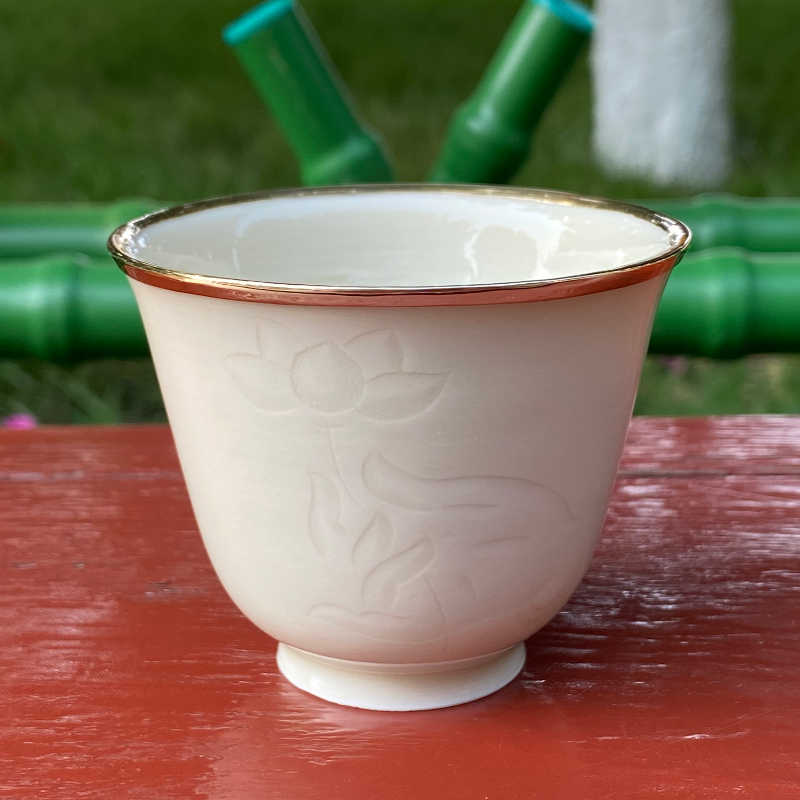 工藝:純手工拉坯、剔花、純金包口工藝,1320度高溫?zé)啤?/p>
