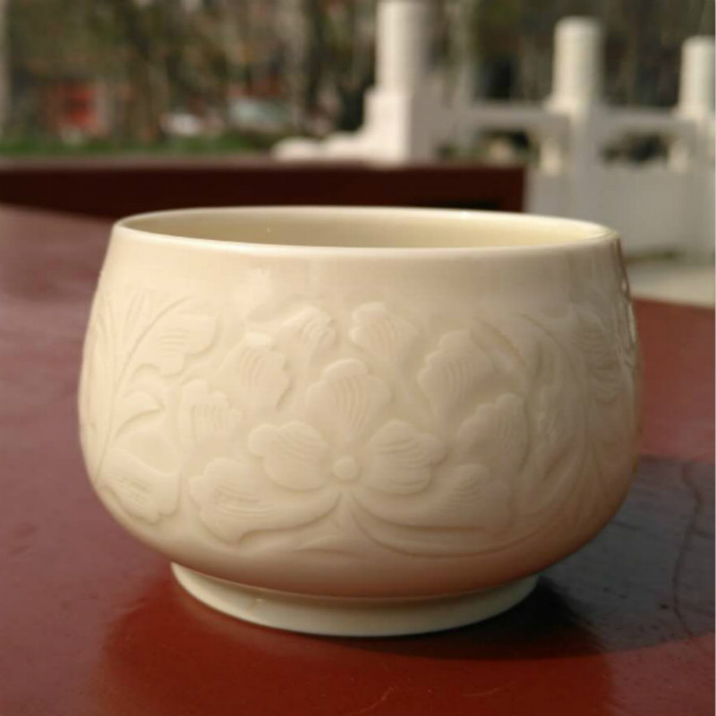 白釉牡丹紋飾杯