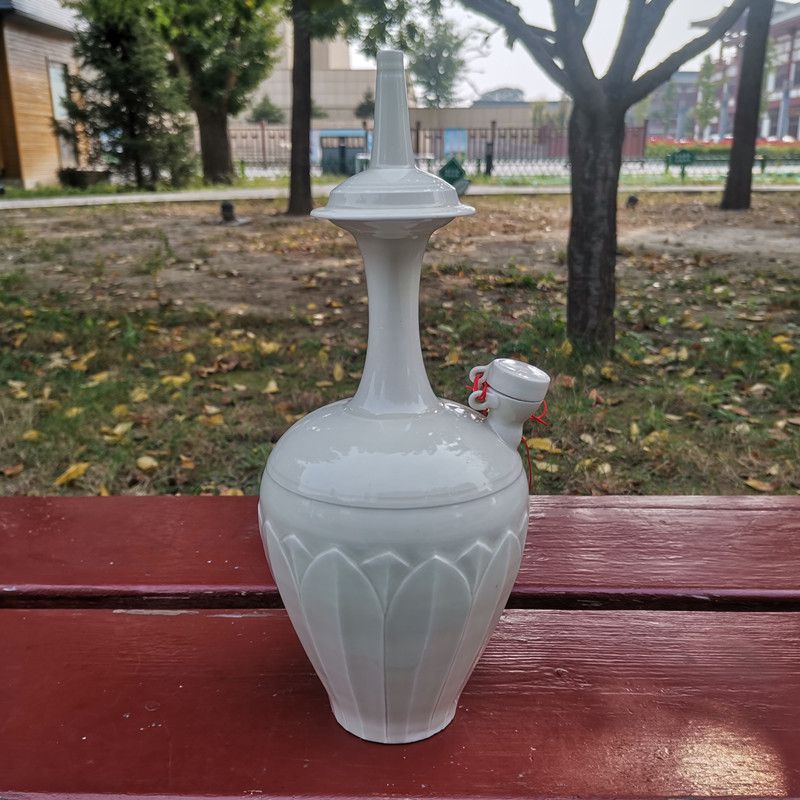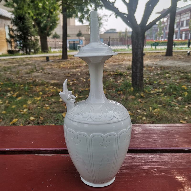 白釉刻蓮瓣龍首凈瓶