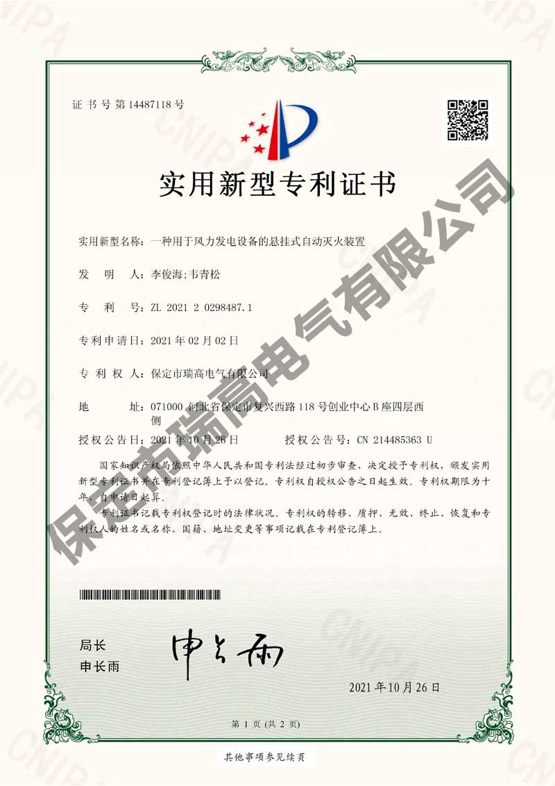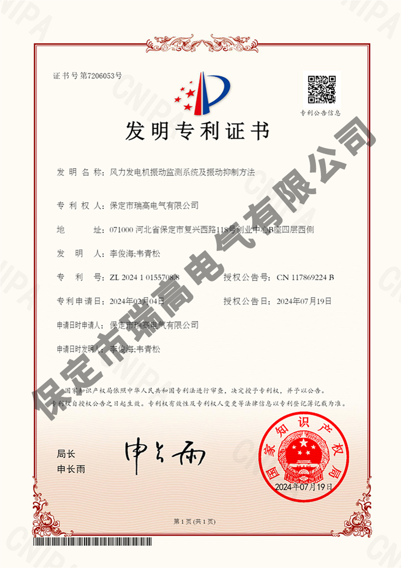 風(fēng)力發(fā)電機振動監(jiān)測系統(tǒng)及振動抑制方法風(fēng)力發(fā)電機振動監(jiān)測系統(tǒng)及振動抑制方法電流檢測系統(tǒng)電流檢測系統(tǒng)干粉滅火設(shè)備干粉滅火設(shè)備葉片狀態(tài)監(jiān)測裝置葉片狀態(tài)監(jiān)測裝置懸掛式自動滅火裝置懸掛式自動滅火裝置接地保護裝置接地保護裝置箱變測控裝置箱變測控裝置環(huán)境管理體系認證證書環(huán)境管理體系認證證書
